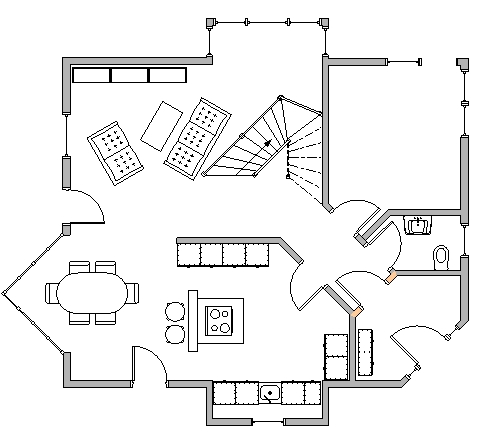 Küche raus und füge das Ganze in den Außengrundriss von K ein. So